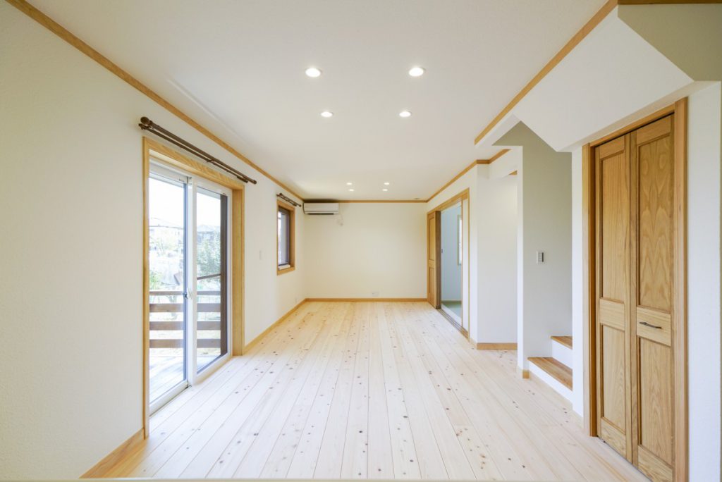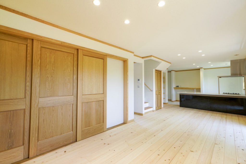 明るいLDKは自然素材と木のぬくもりに包まれた空間に、無垢材の床は裸足で過ごしたくなる優しさがあります。