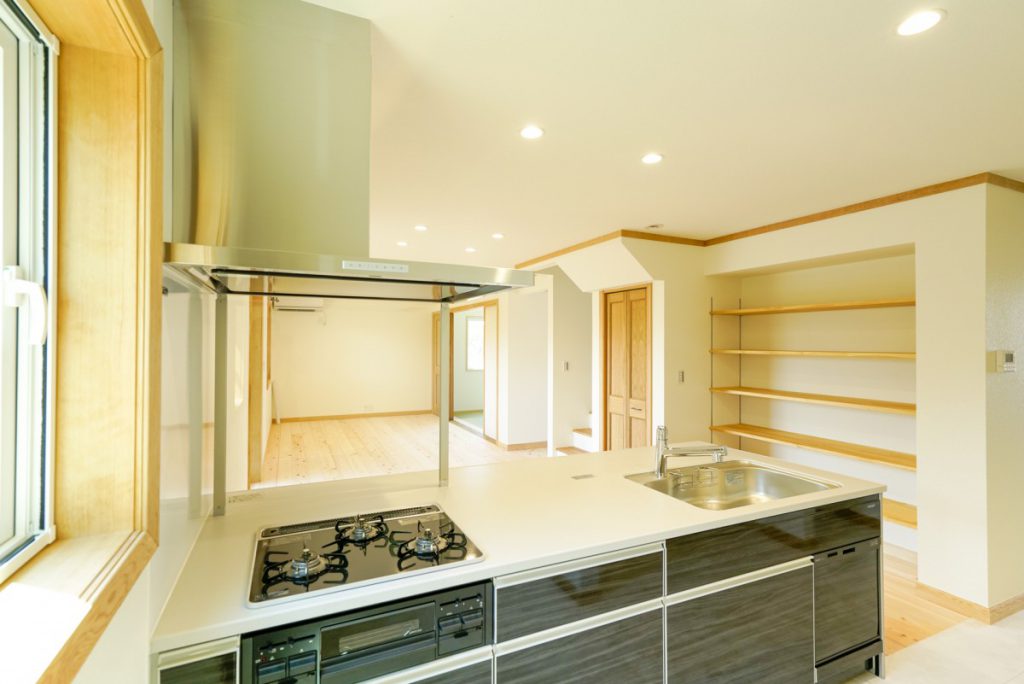 お料理をしながら家族の顔が見えるフラット対面型のキッチン