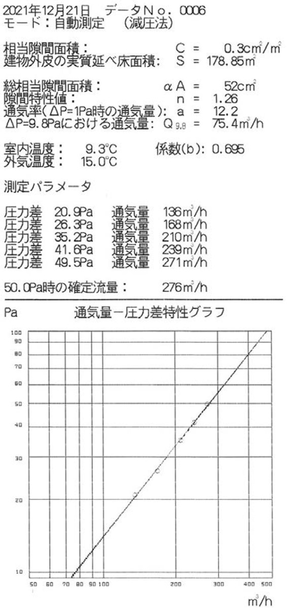 2021年12月、進行中の現場にて気密測定を実施いたしました。