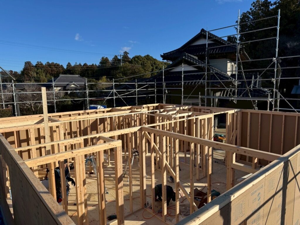 12月26日〜27日かけて、無事に上棟、ルーフィング工事まで完了いたしました。