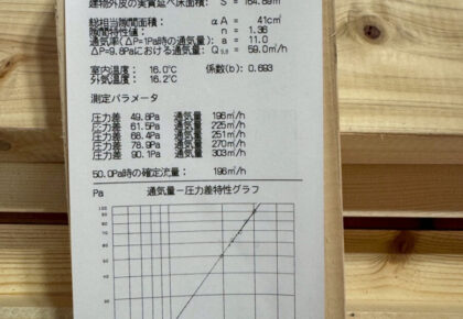 自然素材に包まれた大屋根の家 本日、気密測定を実施いたしました。 C値0.2㎠/㎡ 家づくりで意外と知られていないのが気密測定です。 これは、家にどれくらい「すき間」があるかを数値で確認する、いわば家の健康診断です。 ど…続きを読む