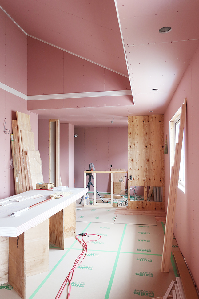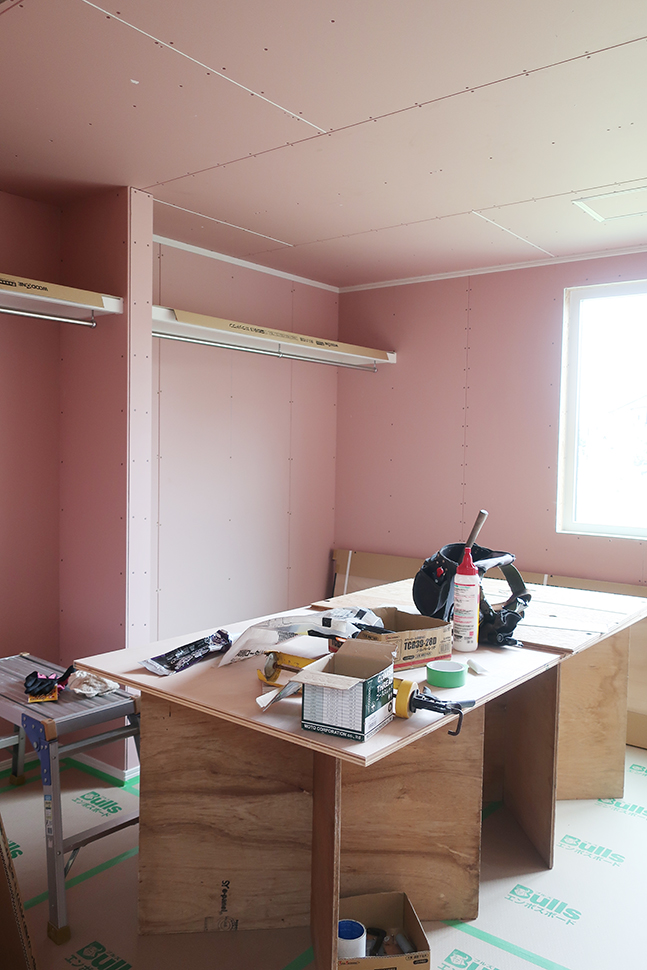 断熱工事も終わり、室内には石膏ボードが入り始めました。