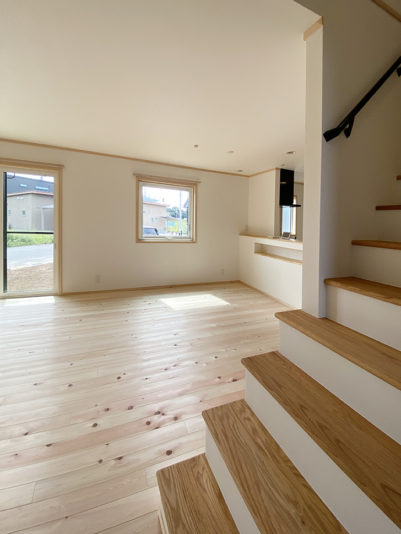 大きな掃き出し窓の外にはウッドデッキ設置を予定しています。