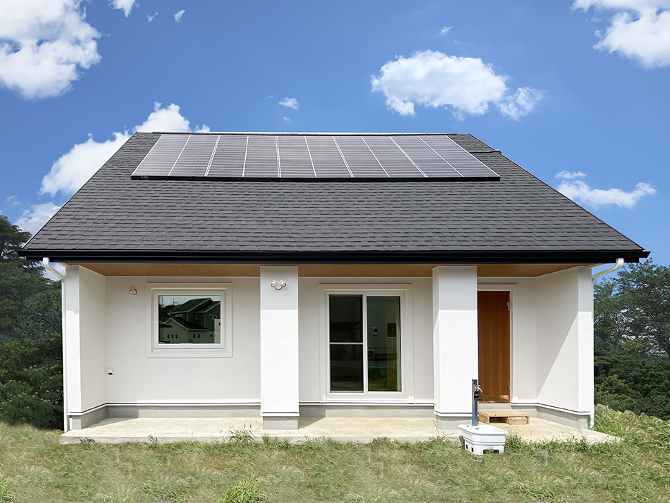 青空に映える大屋根と美しい白壁の素敵なお家が完成しました。