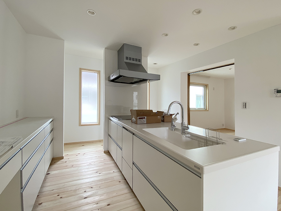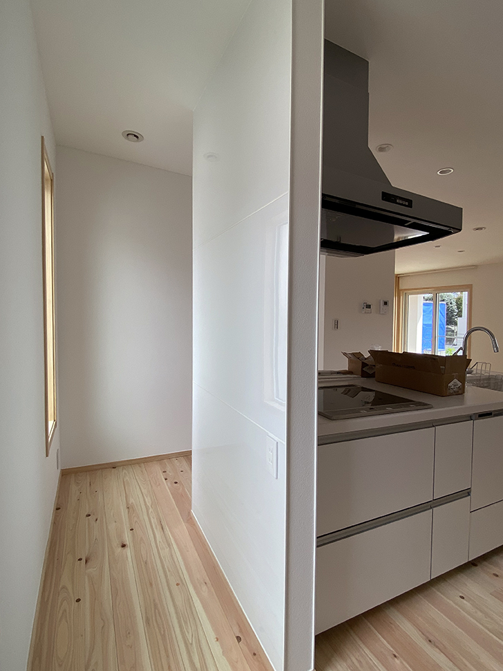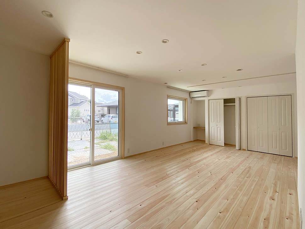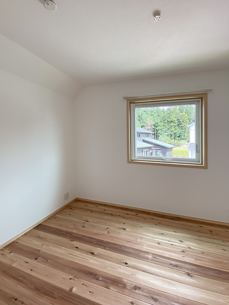 自然素材の床に真っ白な壁の心地よいお部屋です。