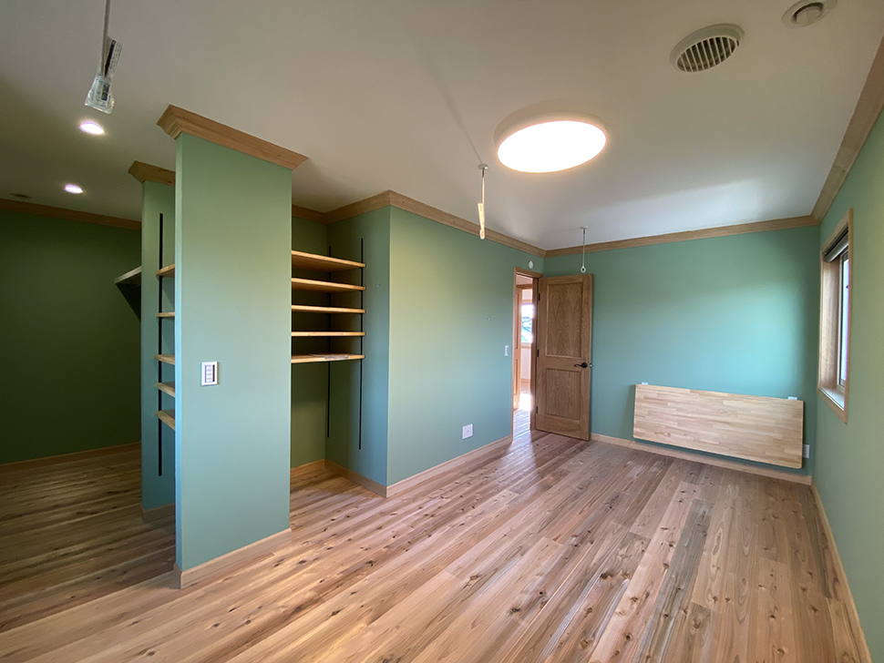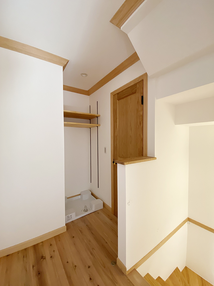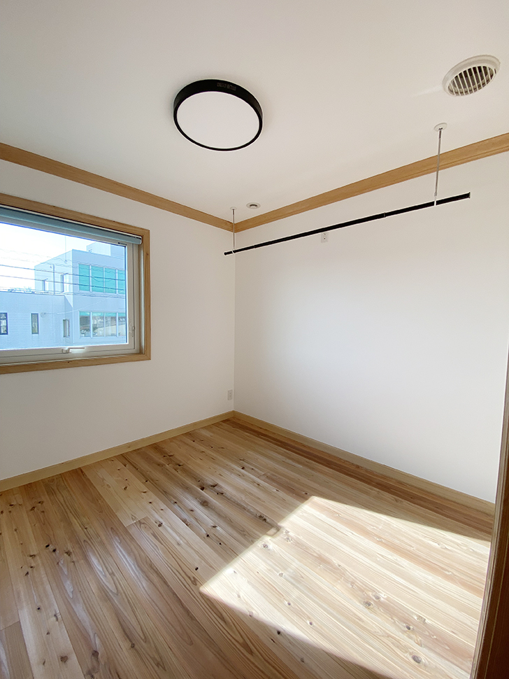 お二階で洗濯ができるよう、2階のお部屋には物干しのポールを下げるための金具が付いています。