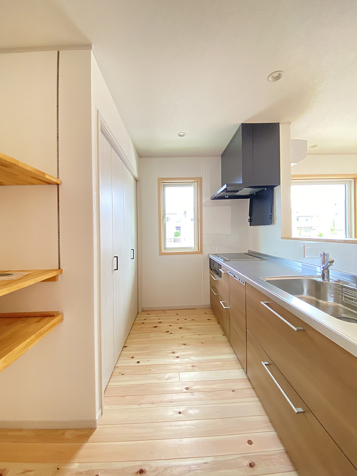 キッチンやLDK、水廻り、収納をつなぐ回遊動線で暮らしやすく。