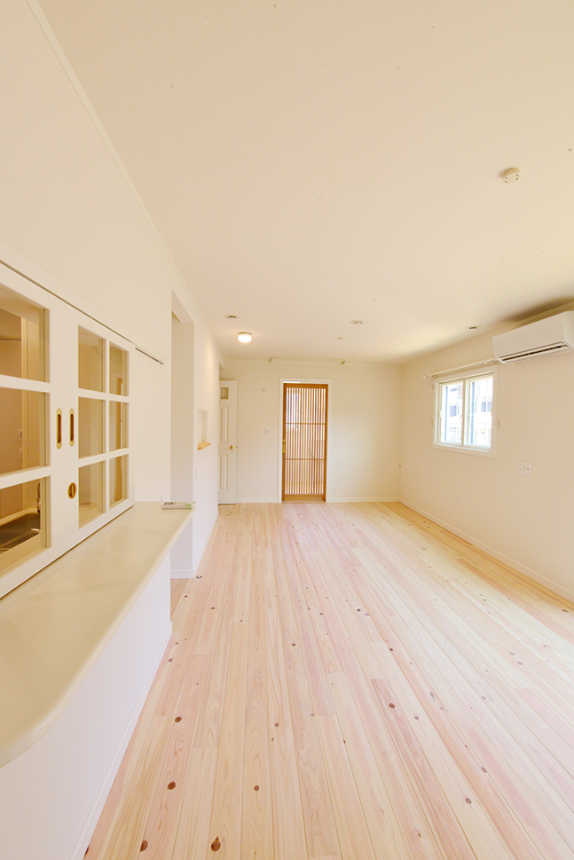 細かい格子の引き戸は、お部屋のイメージを損なわずに「繋がり」と「目隠し」のいいとこ取りができる。