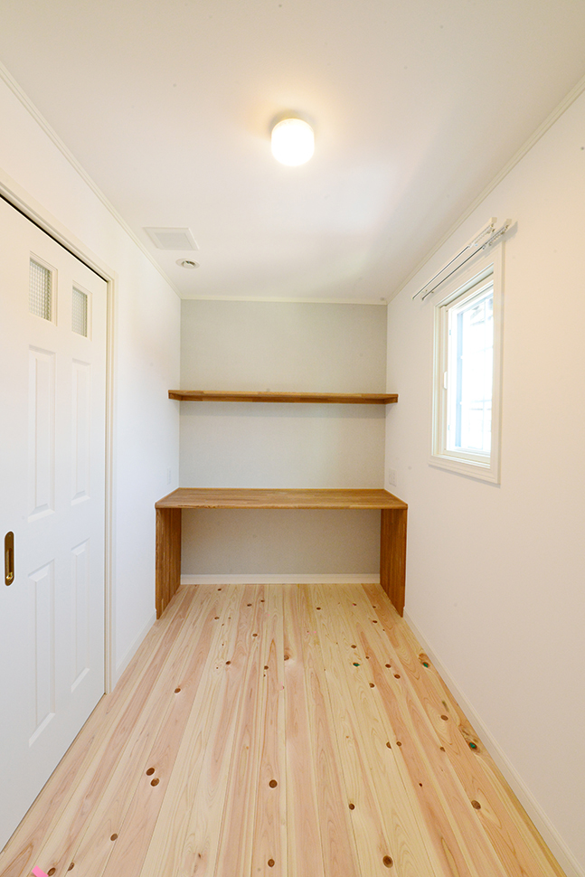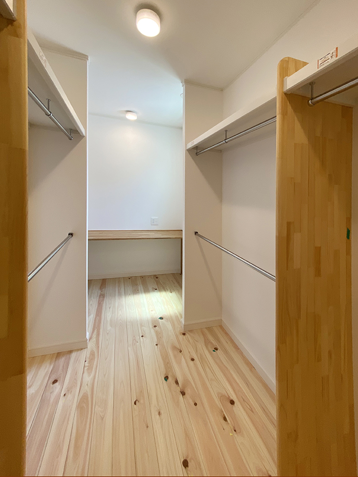 広いウォークインクロゼットの一角に作業スペースを設けた書斎コーナーや小窓など、ちょっとした工夫で暮らしやすさ、使い勝手を追求しています。