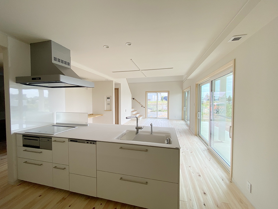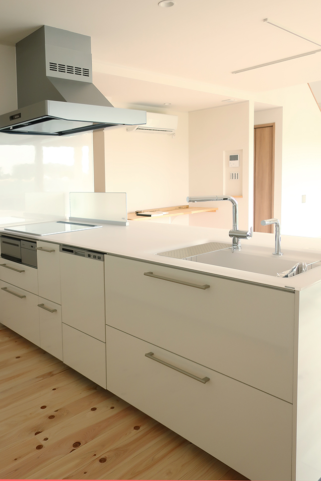 リビングダイニングが見渡せるキッチンは水廻りとの動線も抜群。