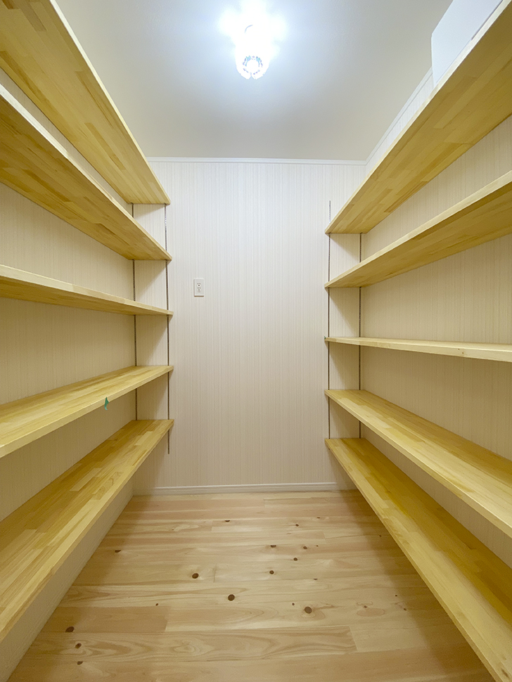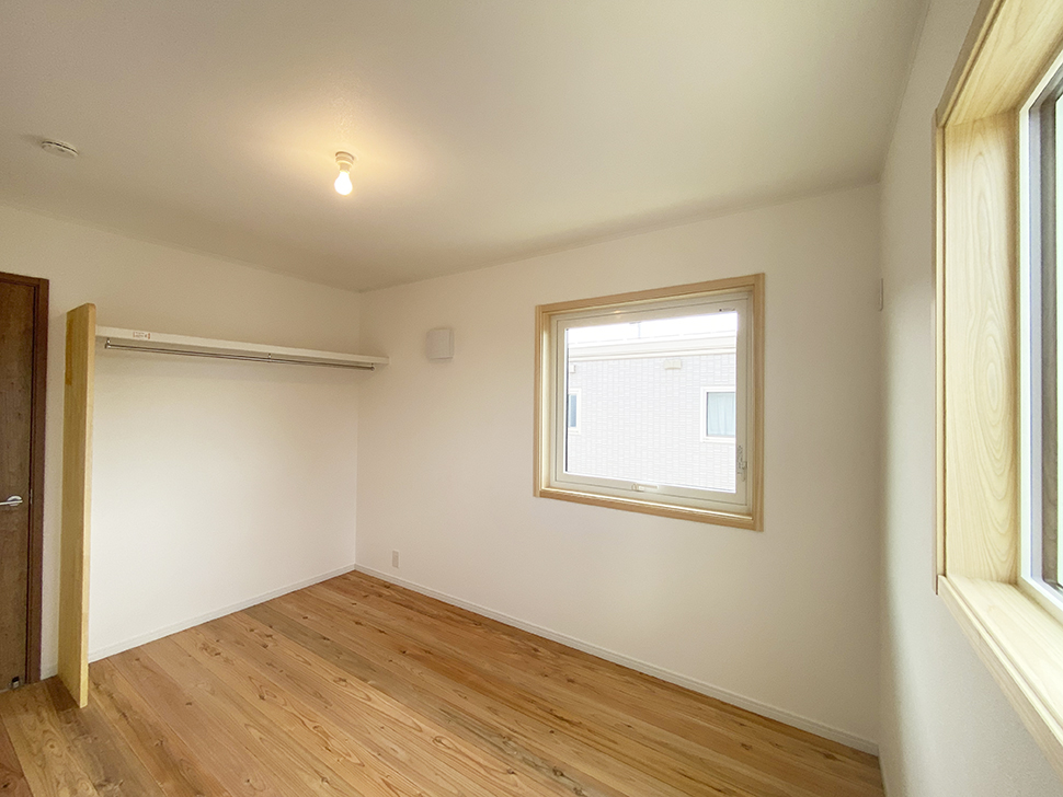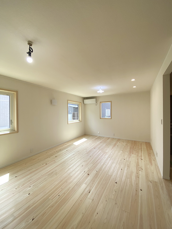 桧の床は自然素材のぬくもりたっぷり。 通気性・吸湿性に優れた自然素材の壁紙に珪藻土ペイントで仕上げています。
