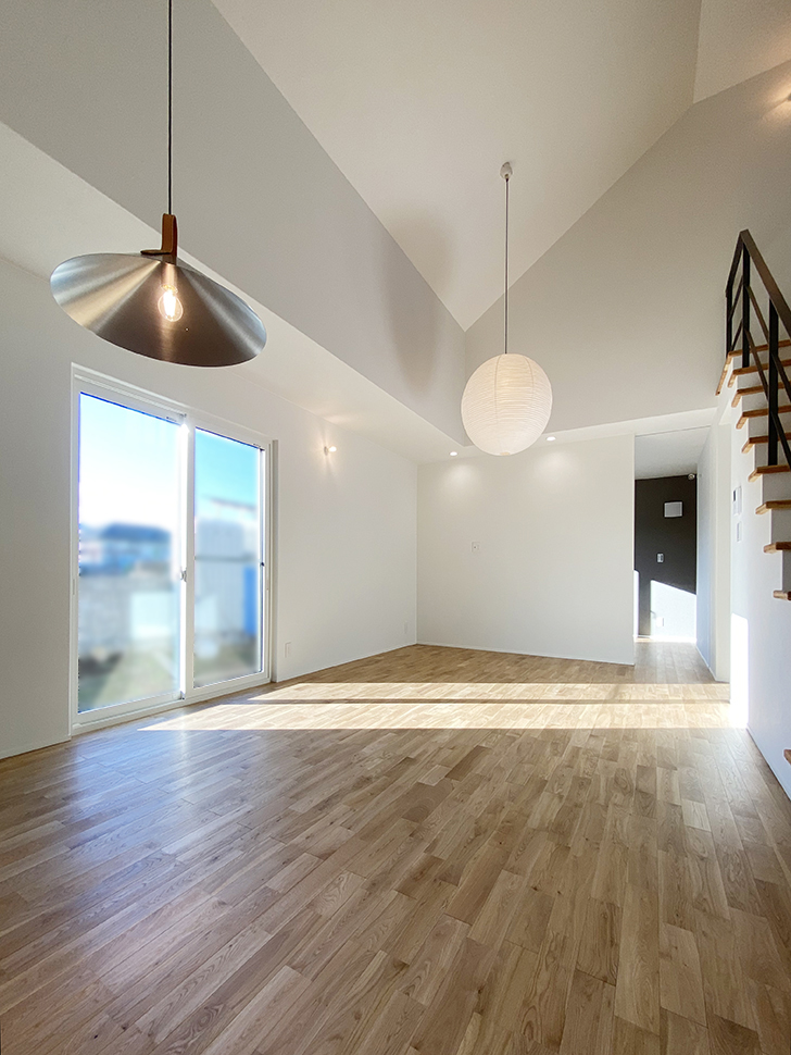 勾配天井の大空間が心地よい、素敵なお家が完成しました。