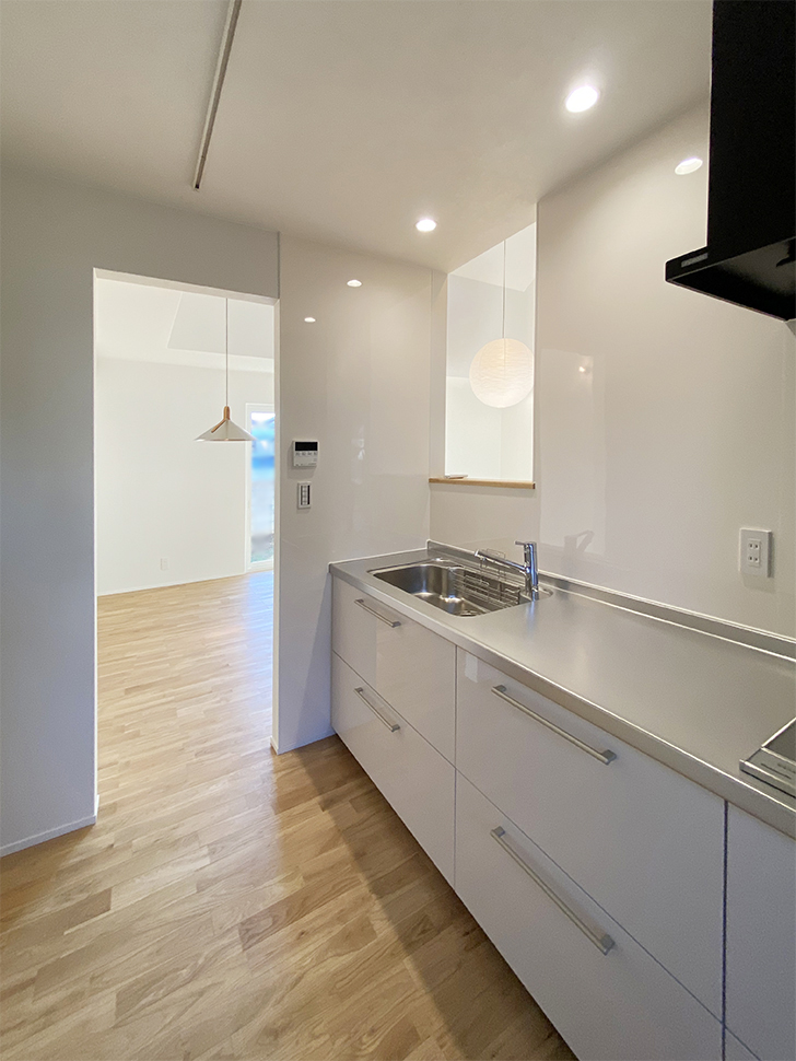 LDKとのつながりを保ちつつ独立させたキッチン。