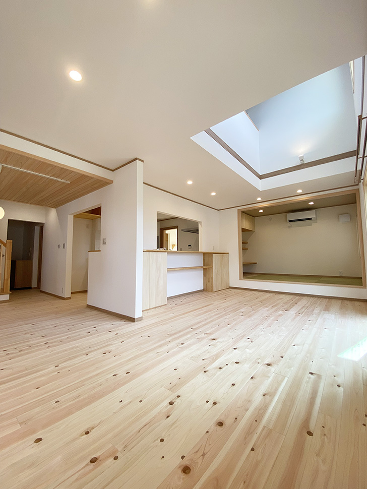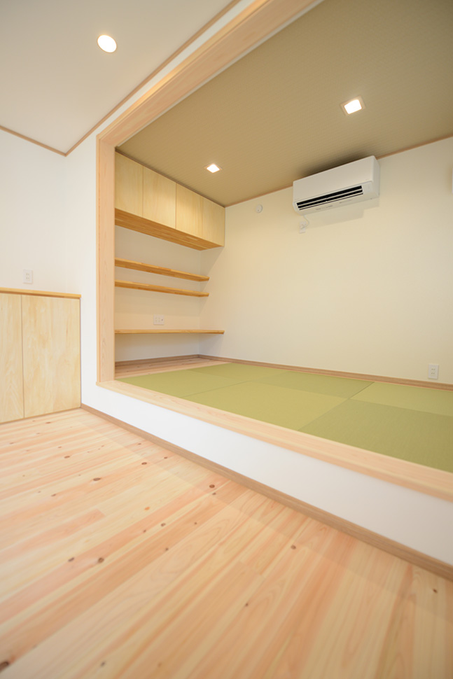 また、リビングの一角に設えた小上がりの和室が楽しい空間作りに一役買っています。