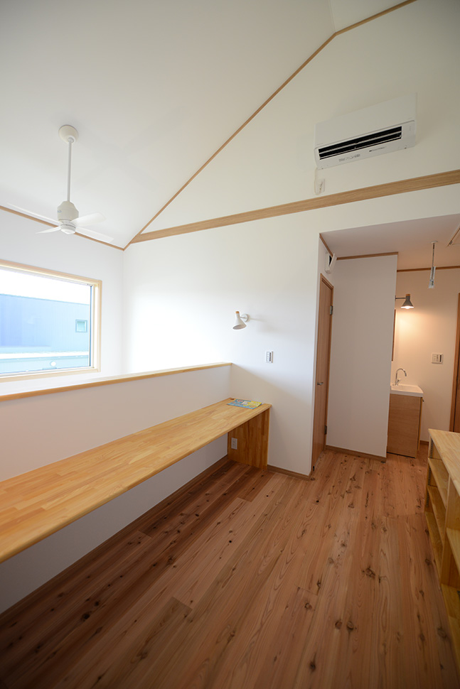 作業スペースのある2階ホールは吹き抜けに面した楽しい空間。
