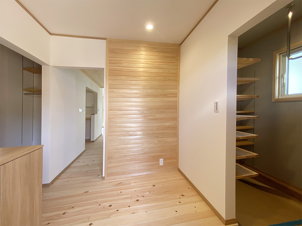 広々とした玄関ホールには十分な広さのシューズクロゼットを設えました。