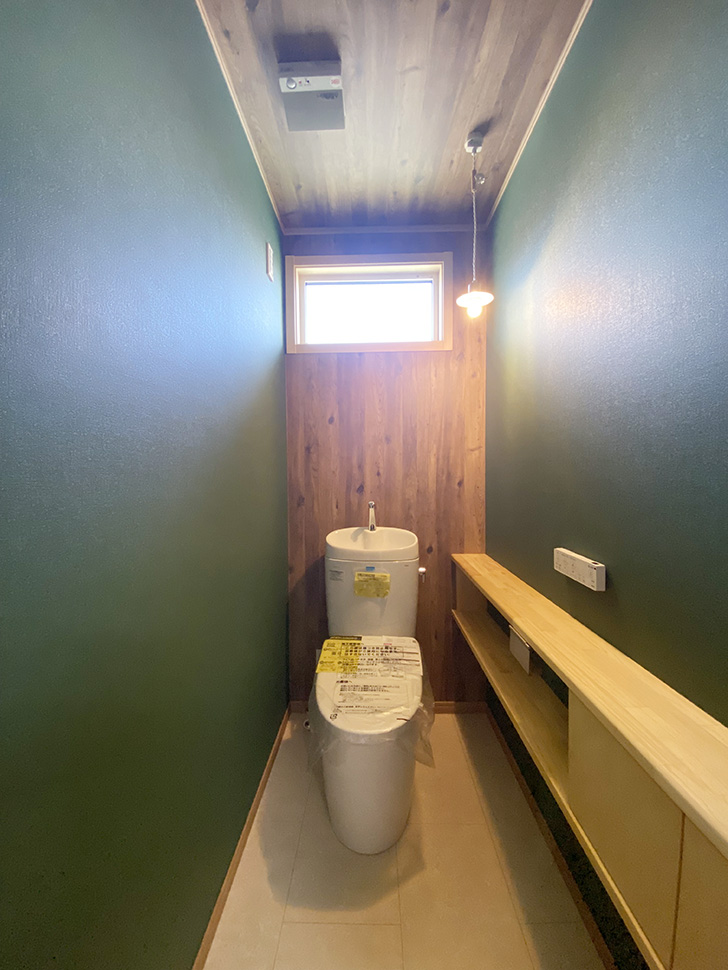 シックにまとめたお手洗いは落ち着いた空間に。
