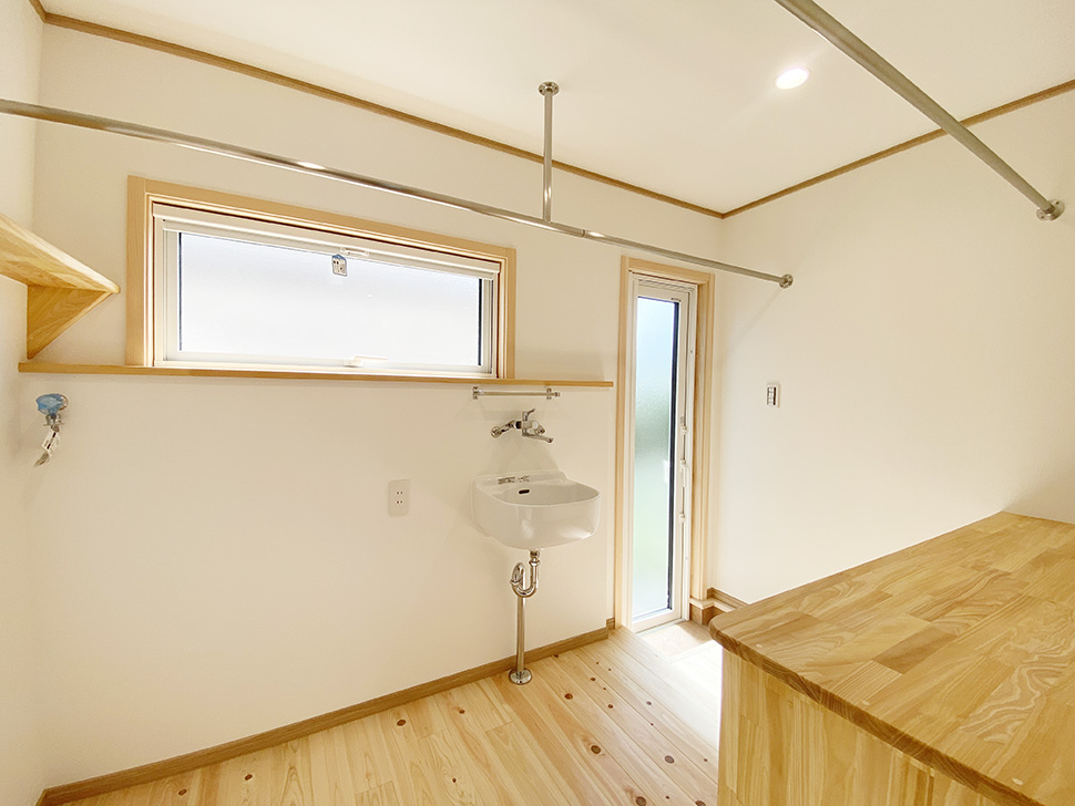 スロップシンクのある浴室周りは広々と。