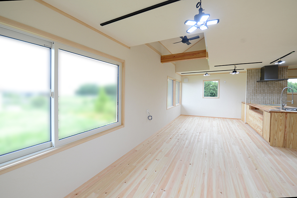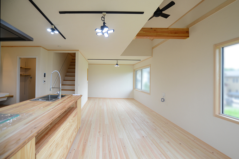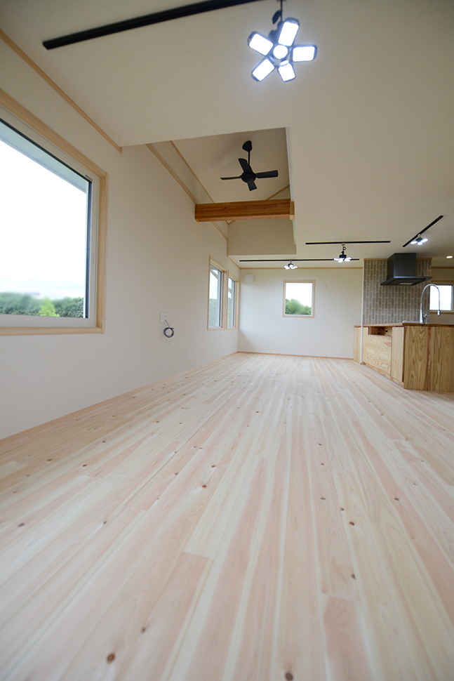 桧の床があたたかなLDK。