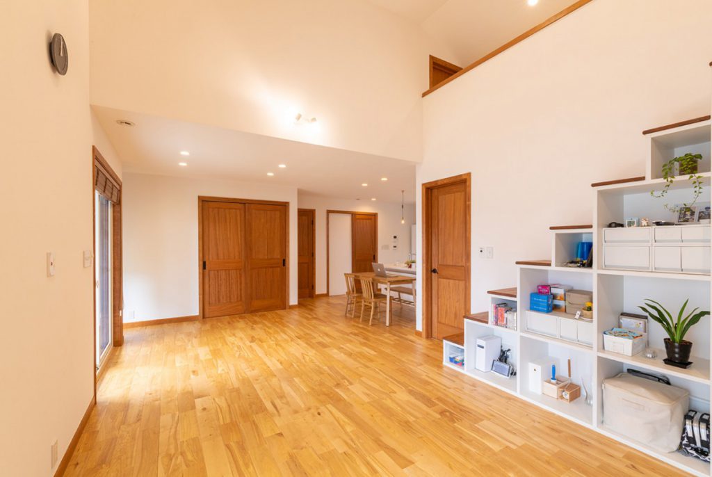 勾配天井が開放的な自然素材の平屋住宅(土浦市)