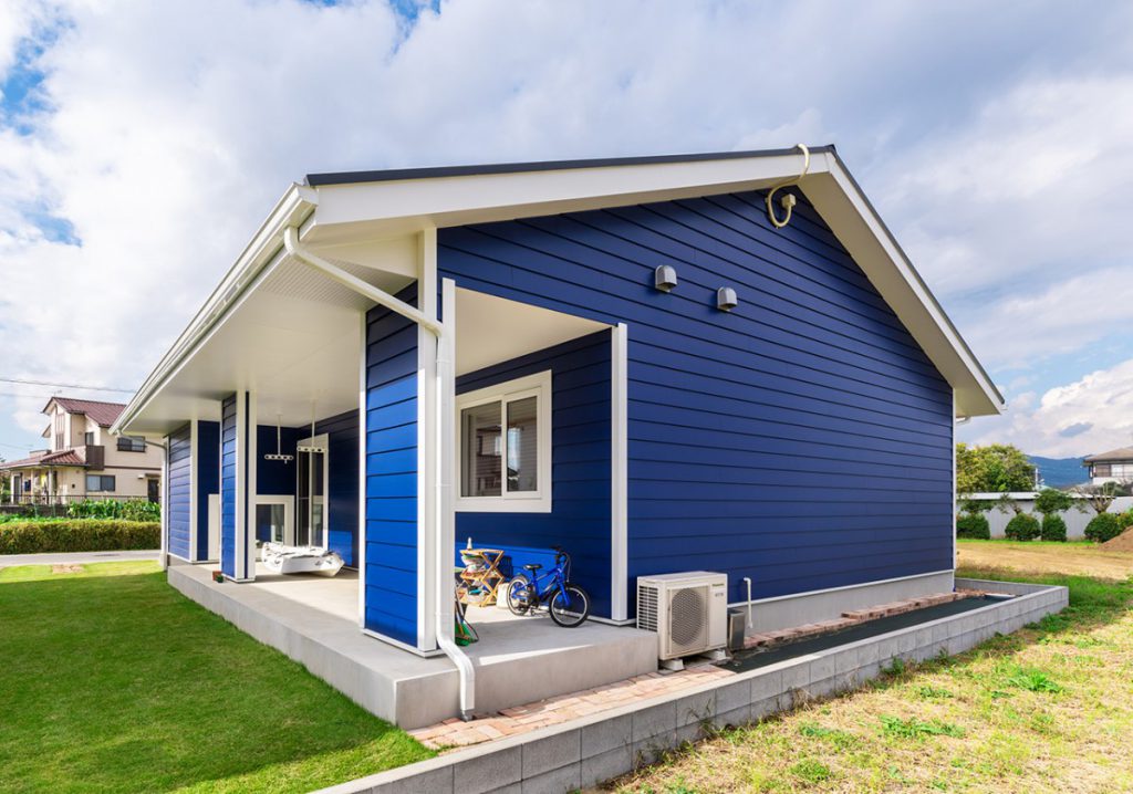 深い庇とラップサイディングが印象的な平屋住宅です。