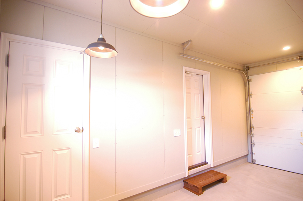 外からはもちろん、家の中からも出入りのできるバイクガレージ。
