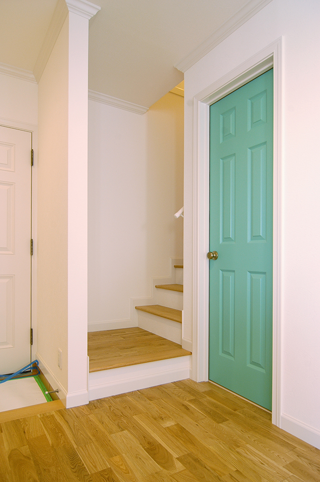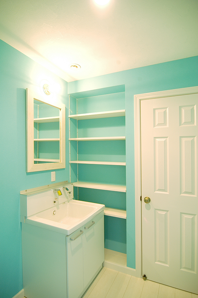 ミントグリーンとホワイトの調和が爽やかな水廻り
