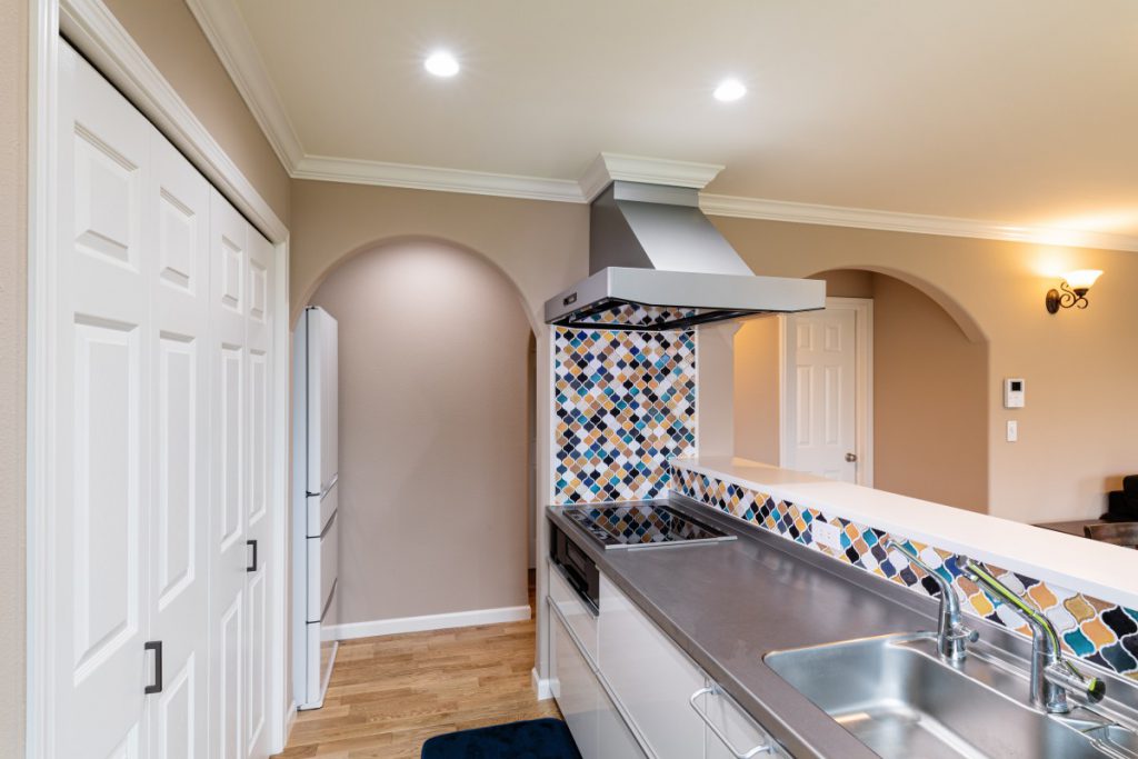 ランダムなタイルが可愛いキッチン