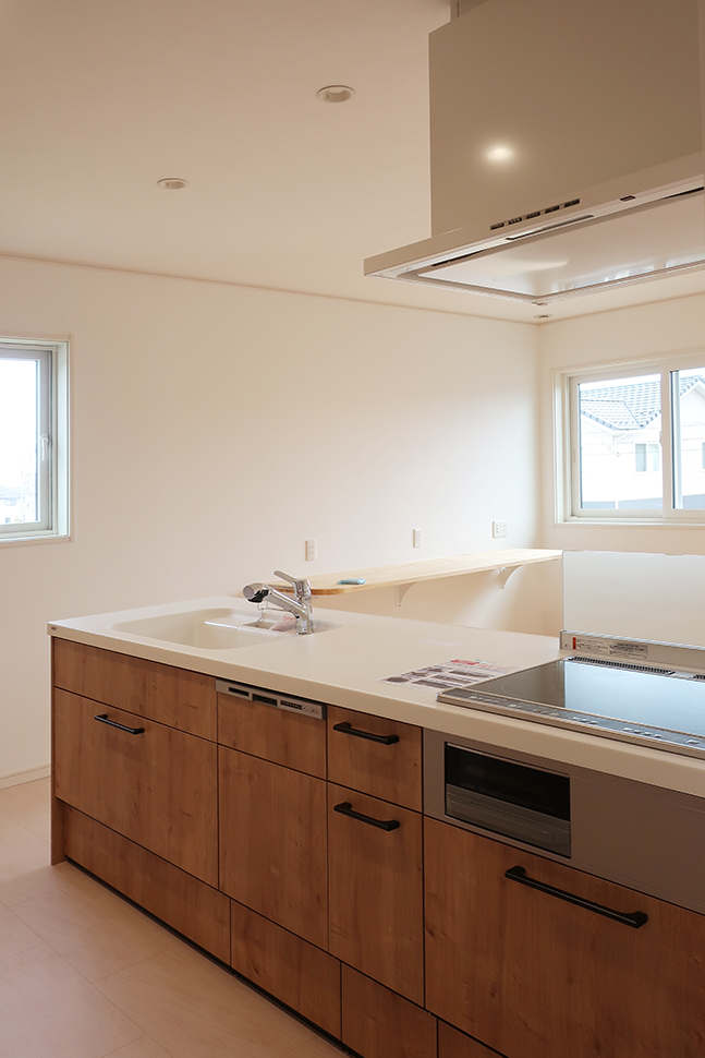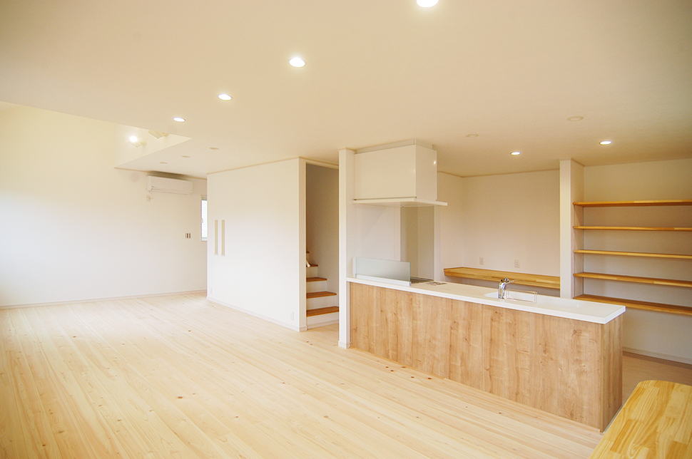 リビング、ダイニング、キッチン〜キッチン裏手のロフトへの階段や多目的スペースを備えた空間がぐるりと繋がる回遊動線で暮らしやすさがアップします。