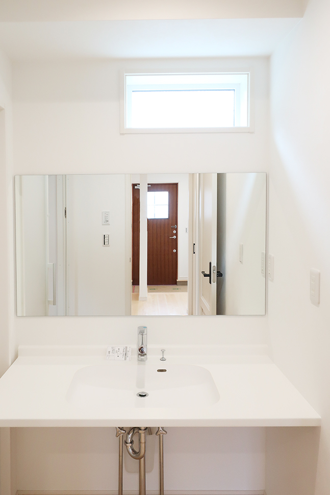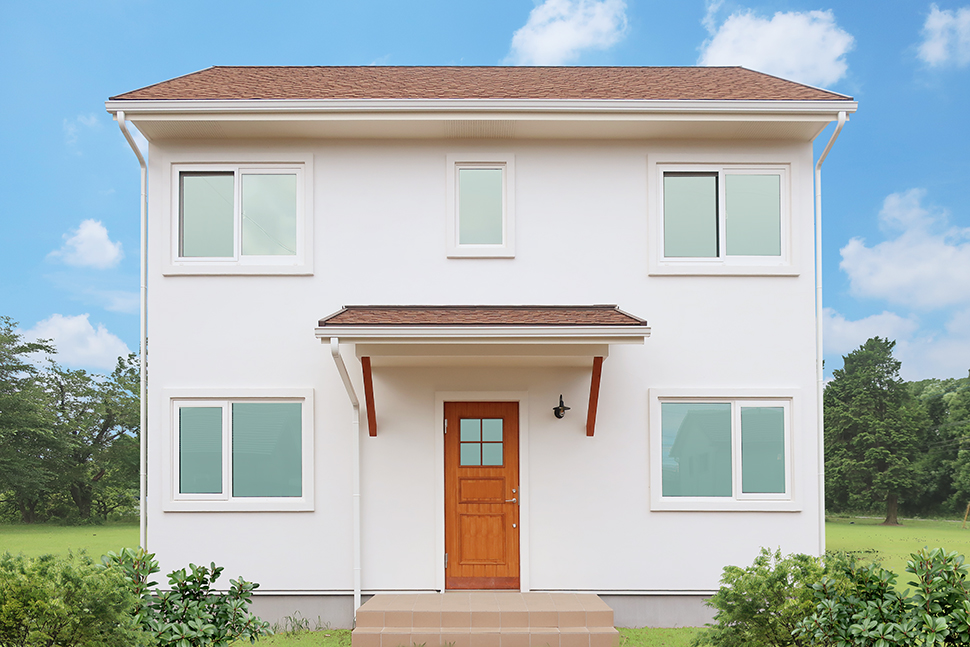 白い塗り壁にスウェドア、シンメトリーな外観が美しいお家。