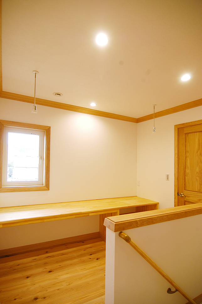 階段ホールには作業スペースを設置。