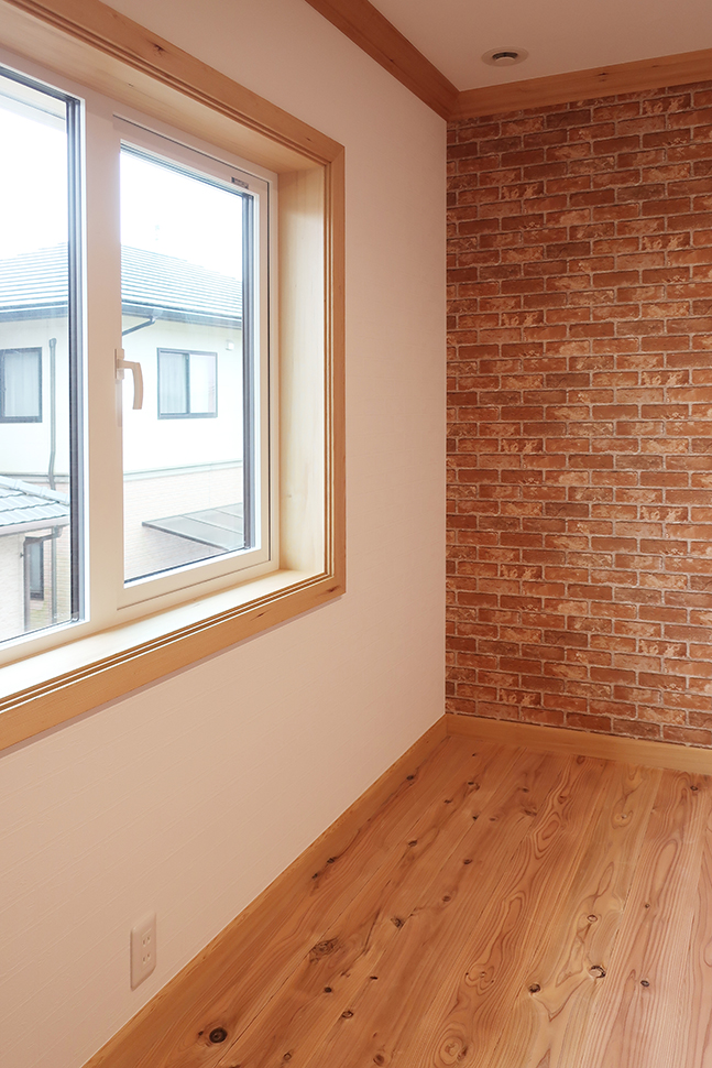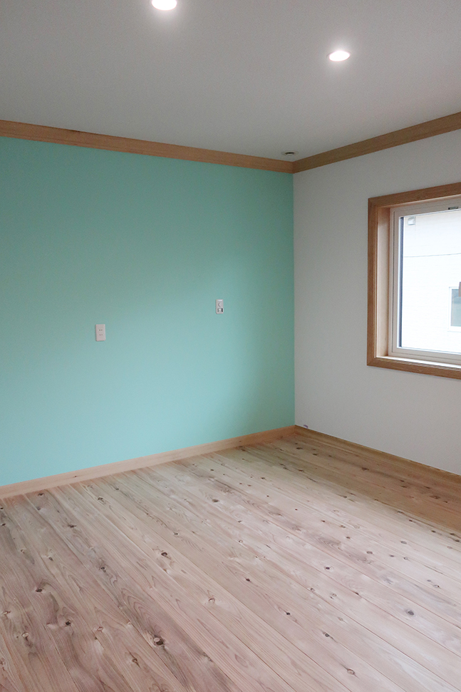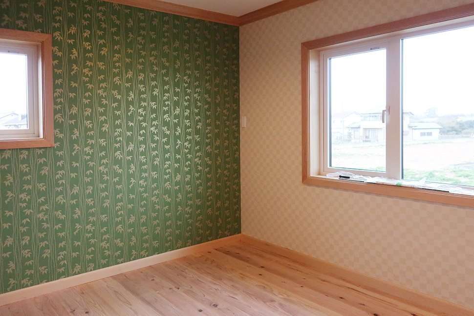 クロスを2種類使用し大胆に貼り分けた2階居室。