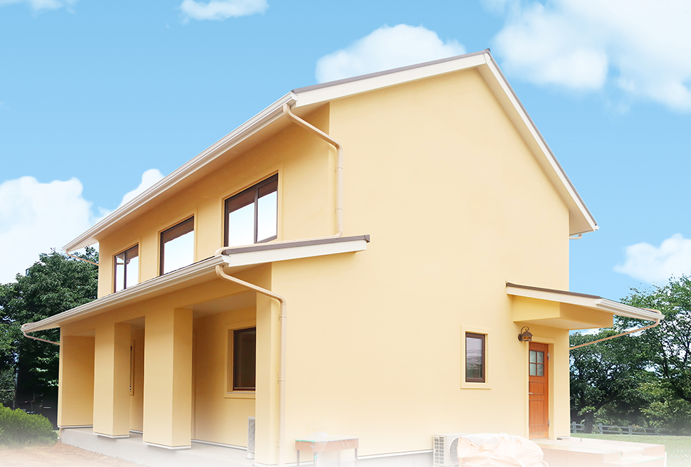 塗り壁が美しい、ダブル断熱の高性能住宅です。
