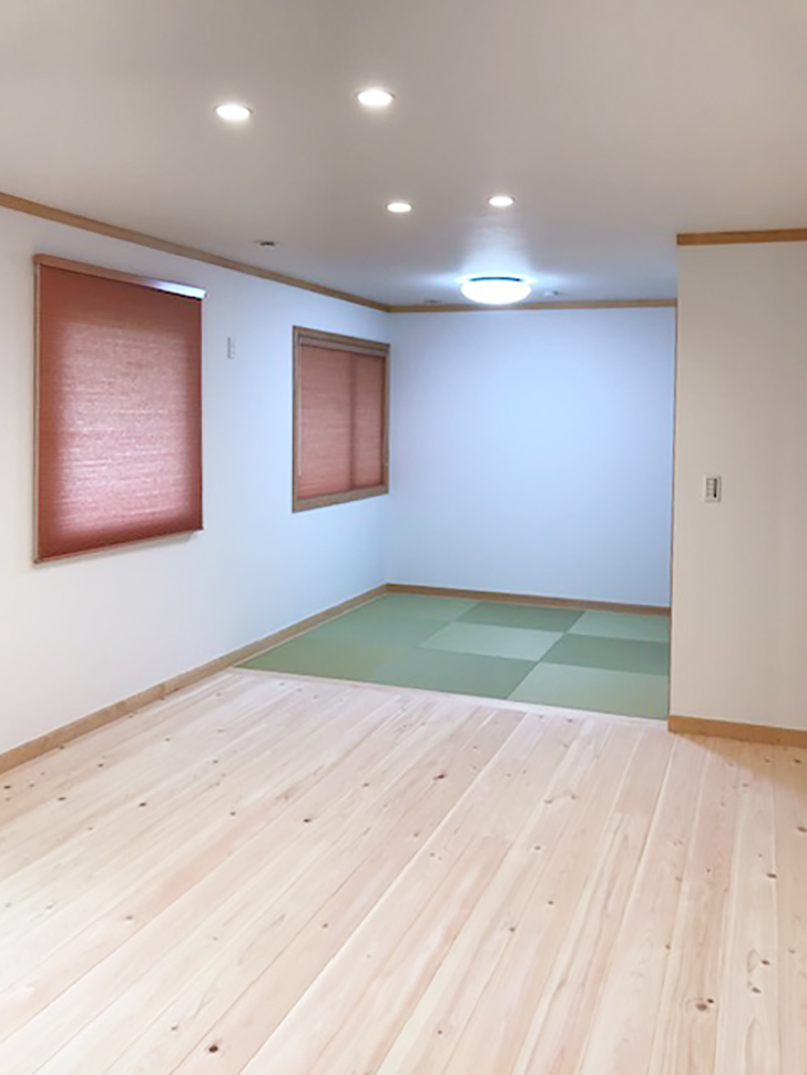 広々としたLDK、一角には畳を敷き和のスペースを。