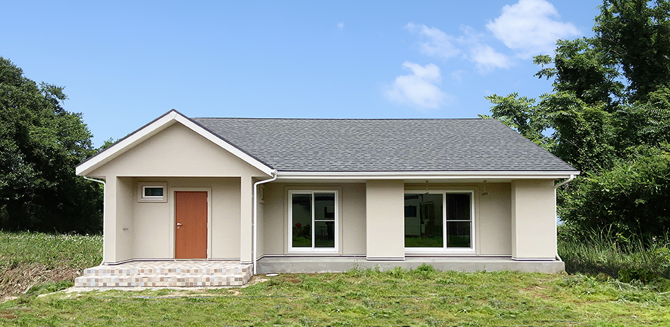 水平な屋根のシルエットが美しい平家住宅が完成しました。