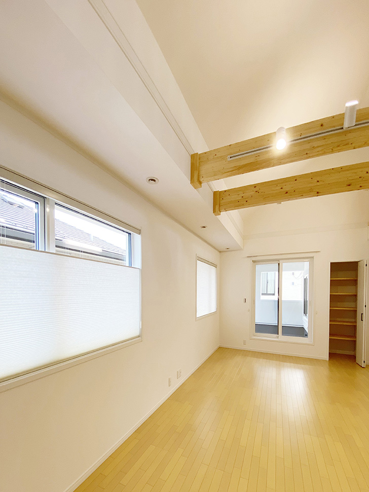 屋根形状を生かした高い吹き抜けで開放感もばっちり。