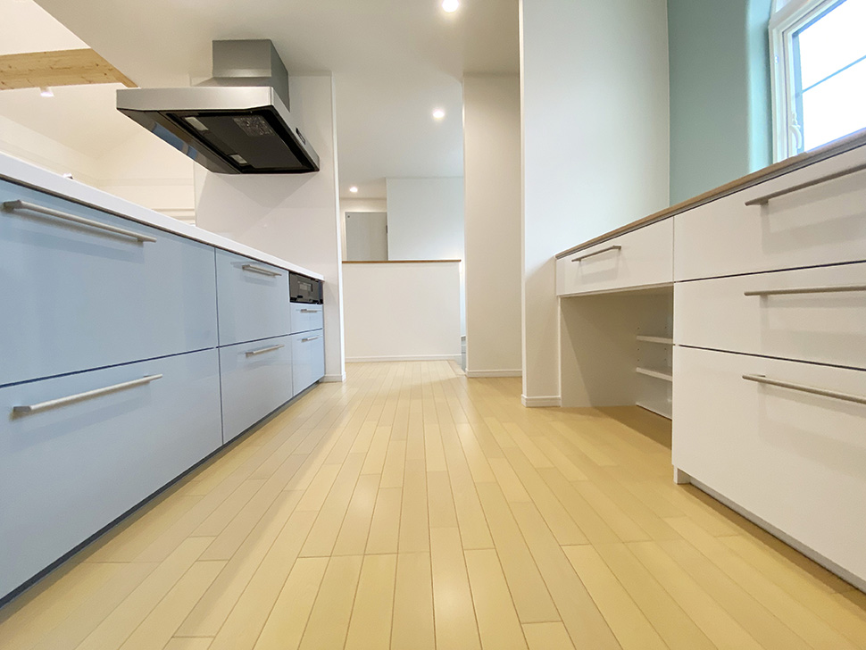 爽やかなブルーが差し色となりリビング全体を明るく。