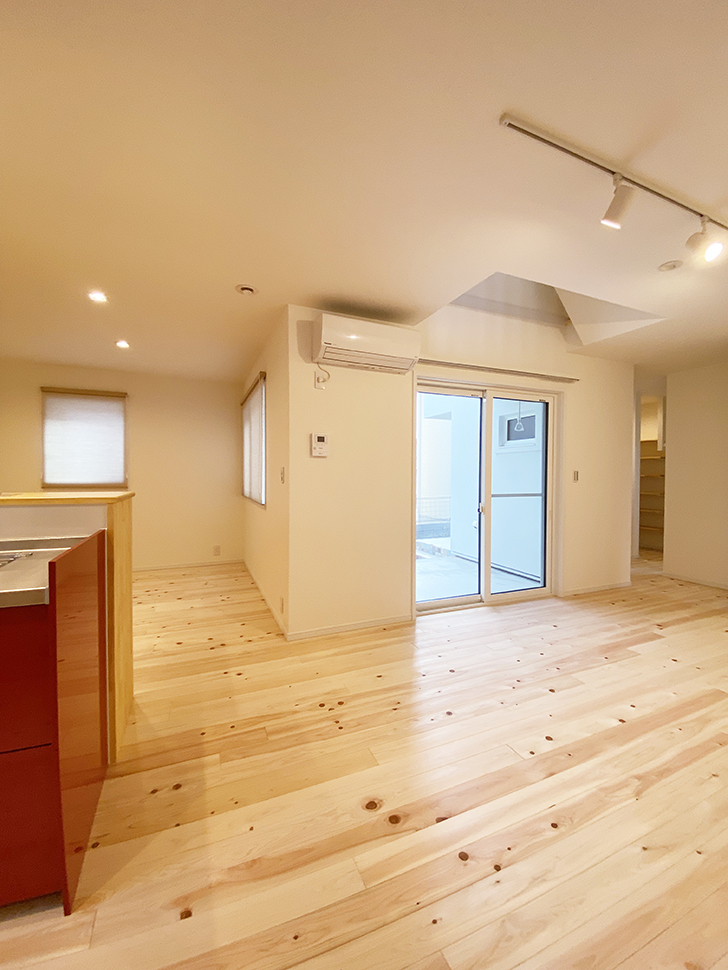 自然素材の床が心地よいLDKは、中庭テラスを囲む間取り。
