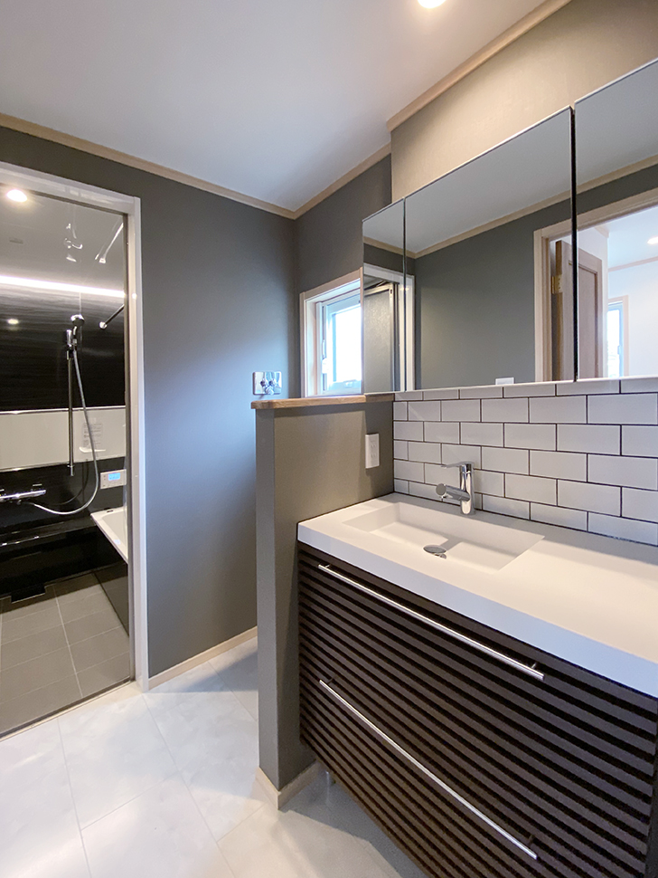 壁の一部使ったタイルがアクセント。