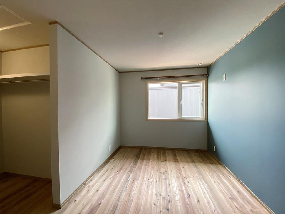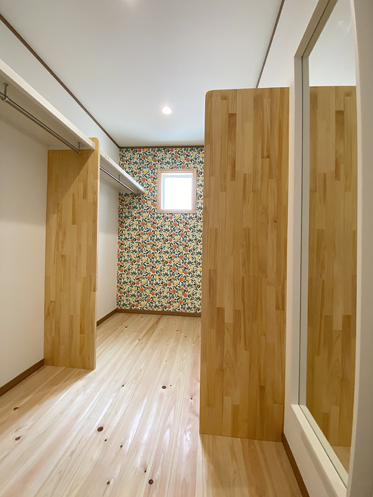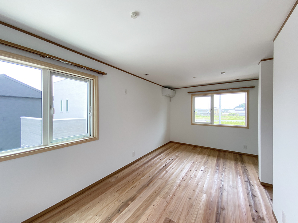 お二階の床は一階とは違う木種のフローリング。
