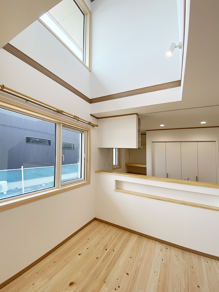 開放感たっぷりの吹き抜けがとても明るいLDK。