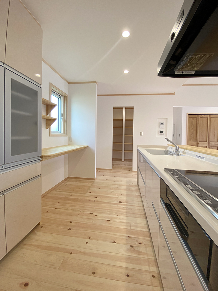 キッチンカウンター下には造り付け棚も。