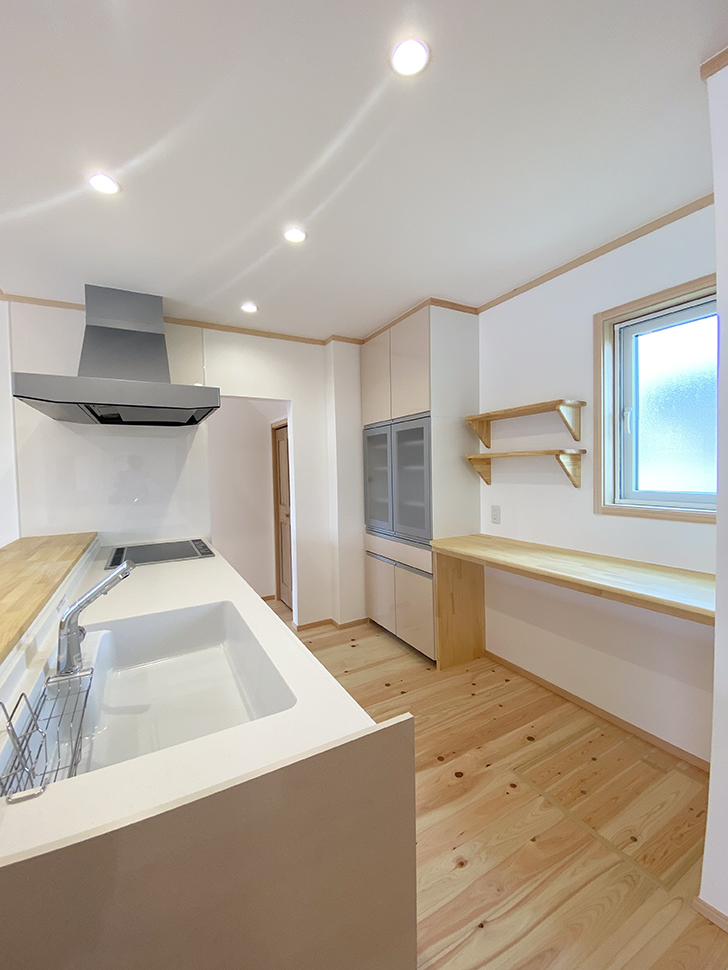 造り付けの作業スペースは多目的に使用できる。