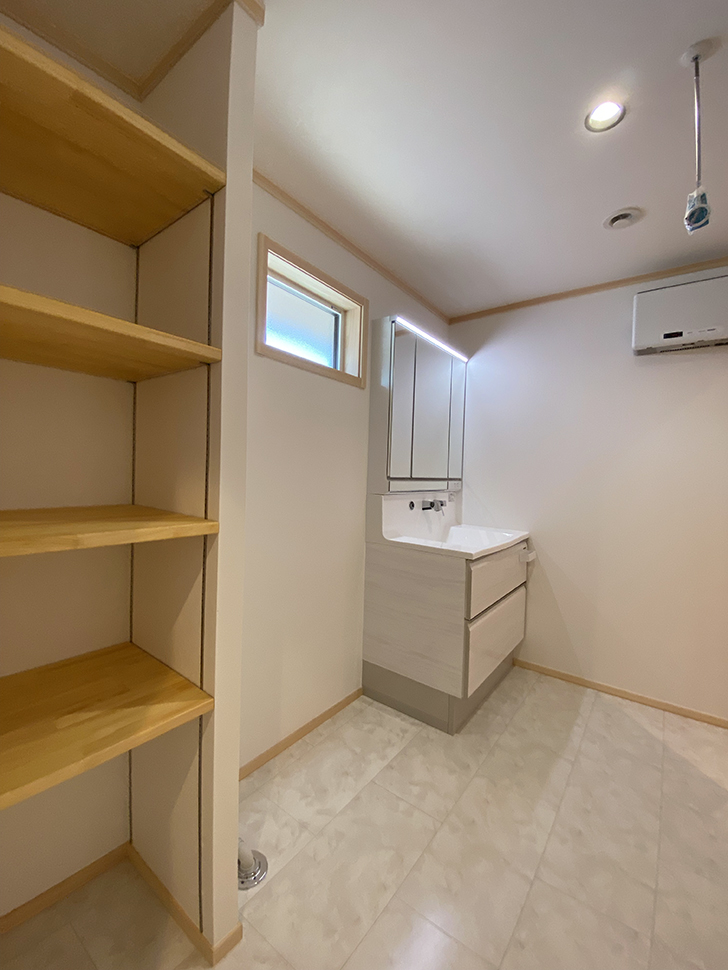 清潔感のある白でまとめた水廻り。