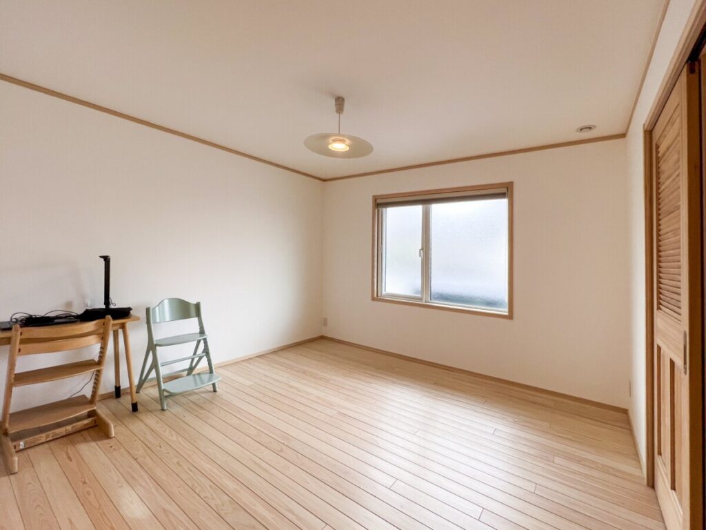 白い壁とナチュラルな自然素材の床が美しい居室。