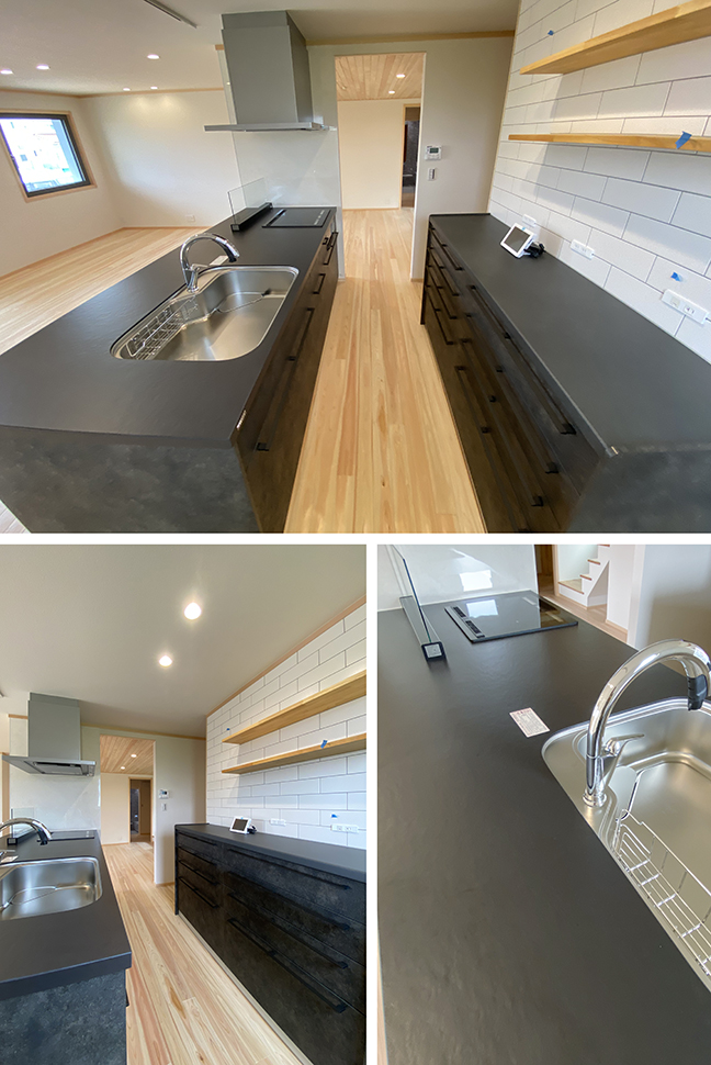 微妙な凹凸が美しいシンク周りの天板も素敵。