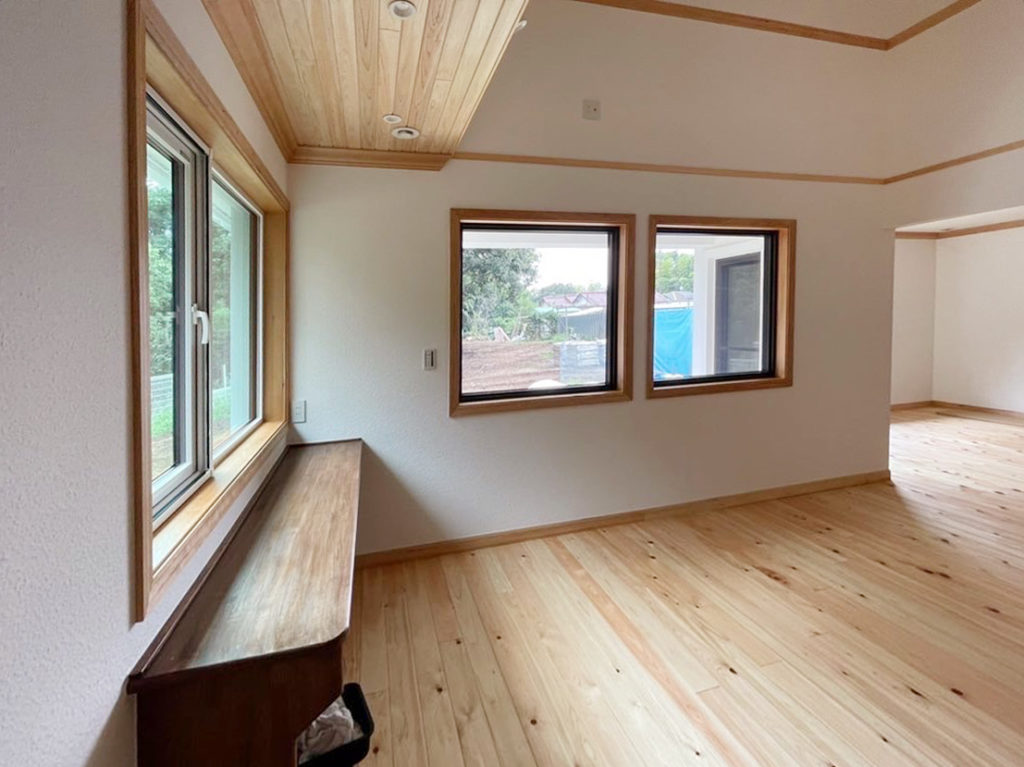 堂々とした屋根に設えたドーマー窓が印象的な、自然素材の家が完成しました。