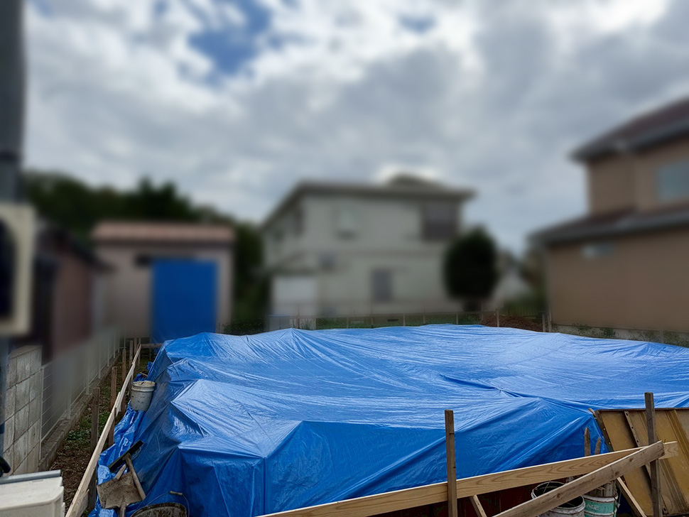 当日には、屋根のルーフィングまで行うことにより、雨に濡れるリスクを少なくする私たちのこだわりです。