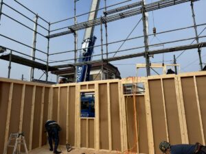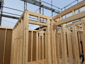 土台やスタッドなどを国産 桧材にて、2日間で上棟をします。