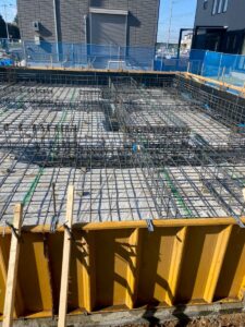 基礎配筋工事が終わりました。全棟 許容応力度計算を標準にしており、構造躯体の木材だけが変わると思われがちですが、基礎の設計もかわります。